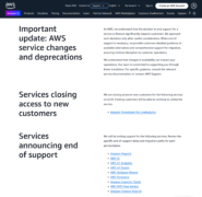 AWS is making it easier for customers to stay on top of availability of AWS services with the launch of its new AWS Product Lifecycle page. The new resource provides a centralized place to see all service availability, including services that are closing access to new customers, services that have announced end of support, and … continue reading